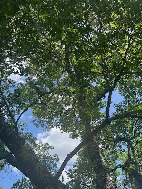 March is the shedding and revealing month in the Austin hills. Live Oak leaves yellow out, shed, bud, and re-leaf within weeks. A majestic Spanish Oak, who I call Grandmother, keeps watch from a corner in my backyard. She shed her leaves in November. Along with the Live Oak ,she is leafing now. New green feels like the color of promise and hope, the color of rebirth, revealing the cycles of life.
